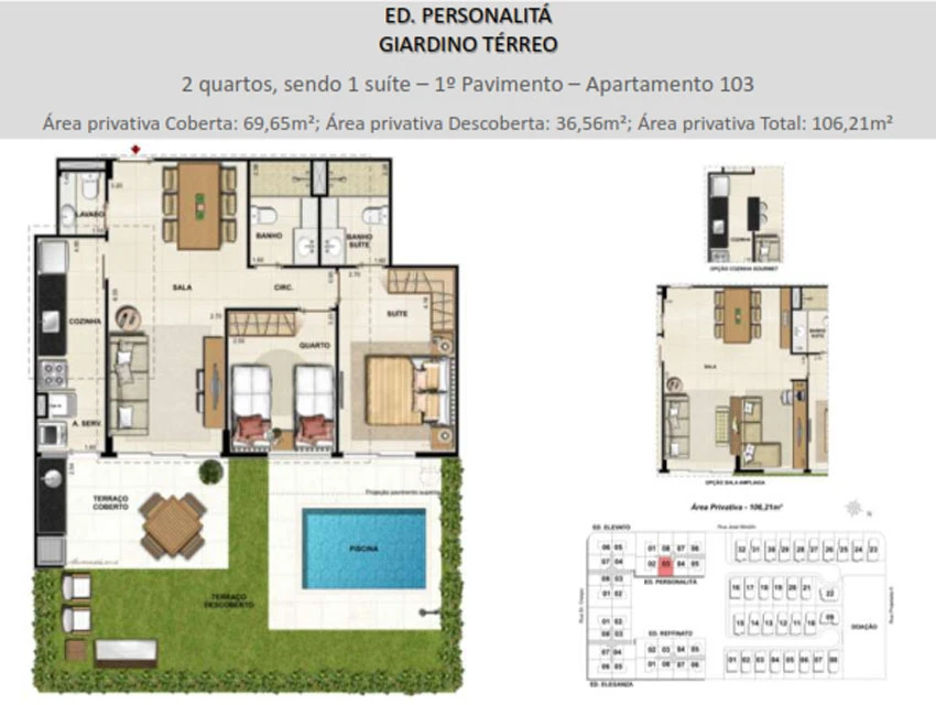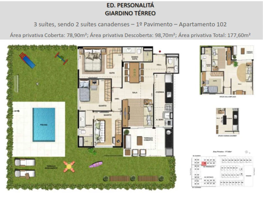 Giardino - Apartamentos garden de 3, 2 e 1 quartos, com lavabo até 221m² e jardim exclusivo entregues com piscina ( ou hidromassagem)* e churrasqueira à gás.